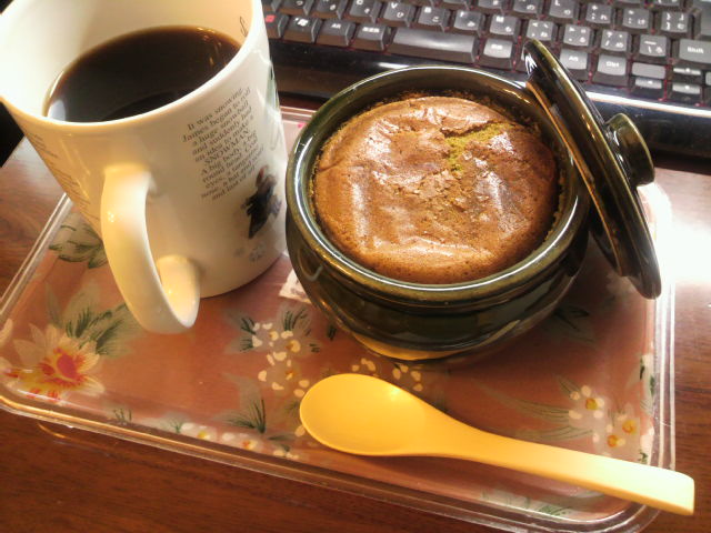 頂き物の抹茶ケーキなんだけど古風な壺に入ってて面白かったのでパシャリしましたー